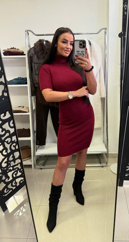 5151 SISSY rövid ujjú basic kötött garbó ruha