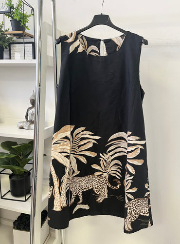 2921 PÁLMA-LEOPÁRD vászon zsebes ruha