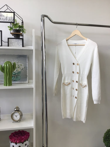 03506 WHITE kötött ruha arany gombbal