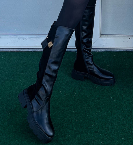 9221 FEKETE velúr betétes csizma