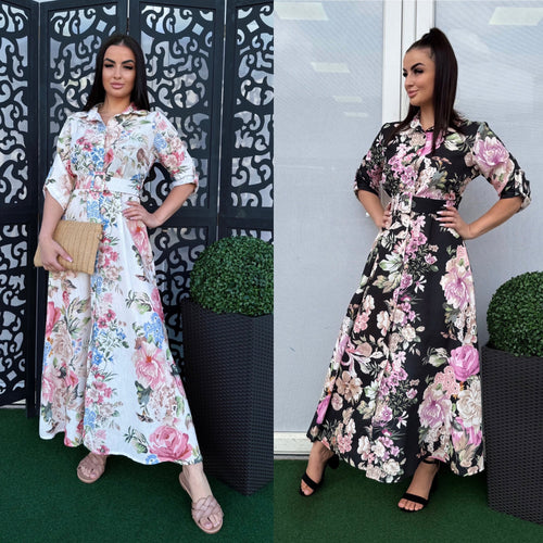 10500 LUCY virágos öves vászon ruha
