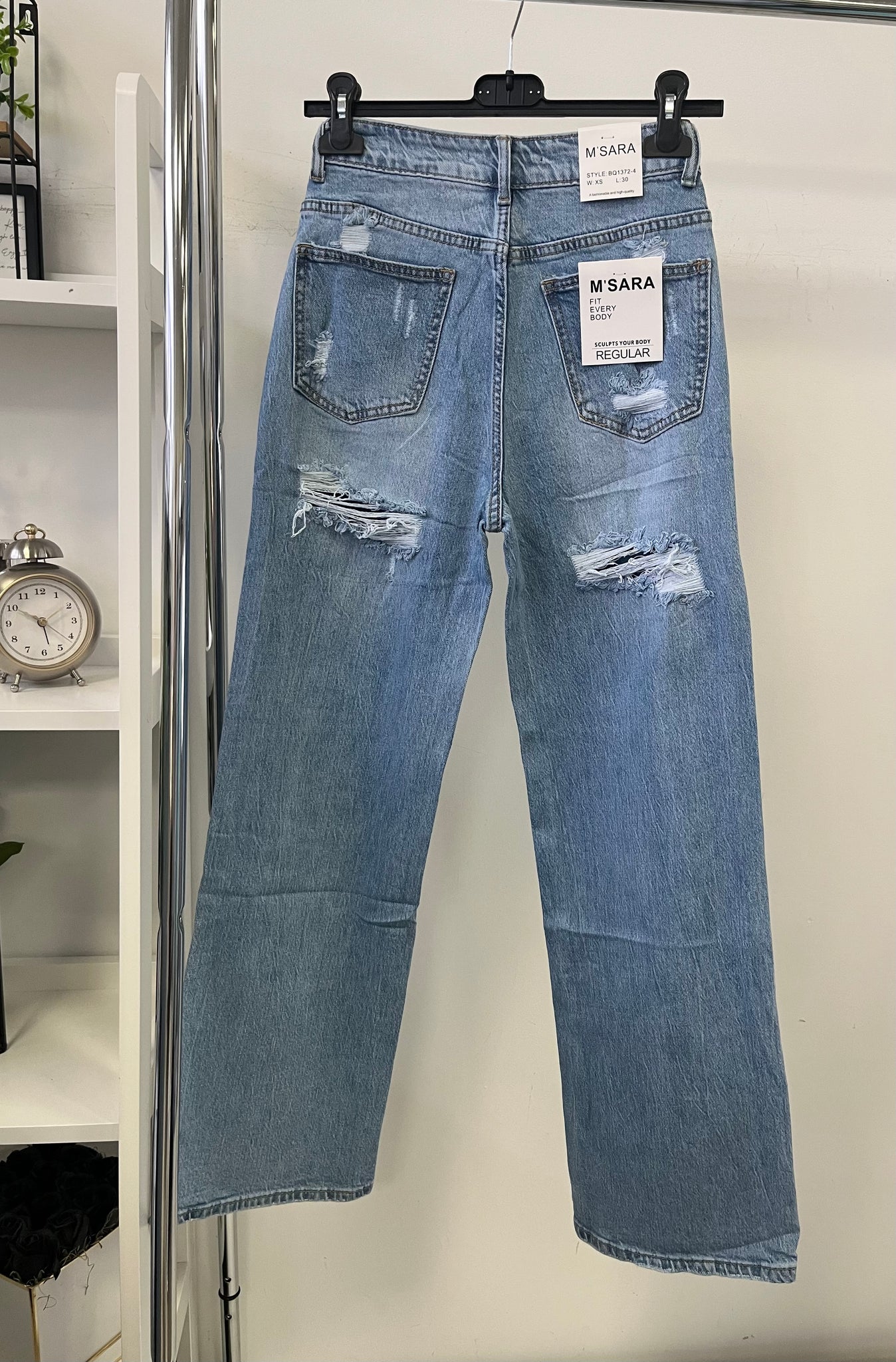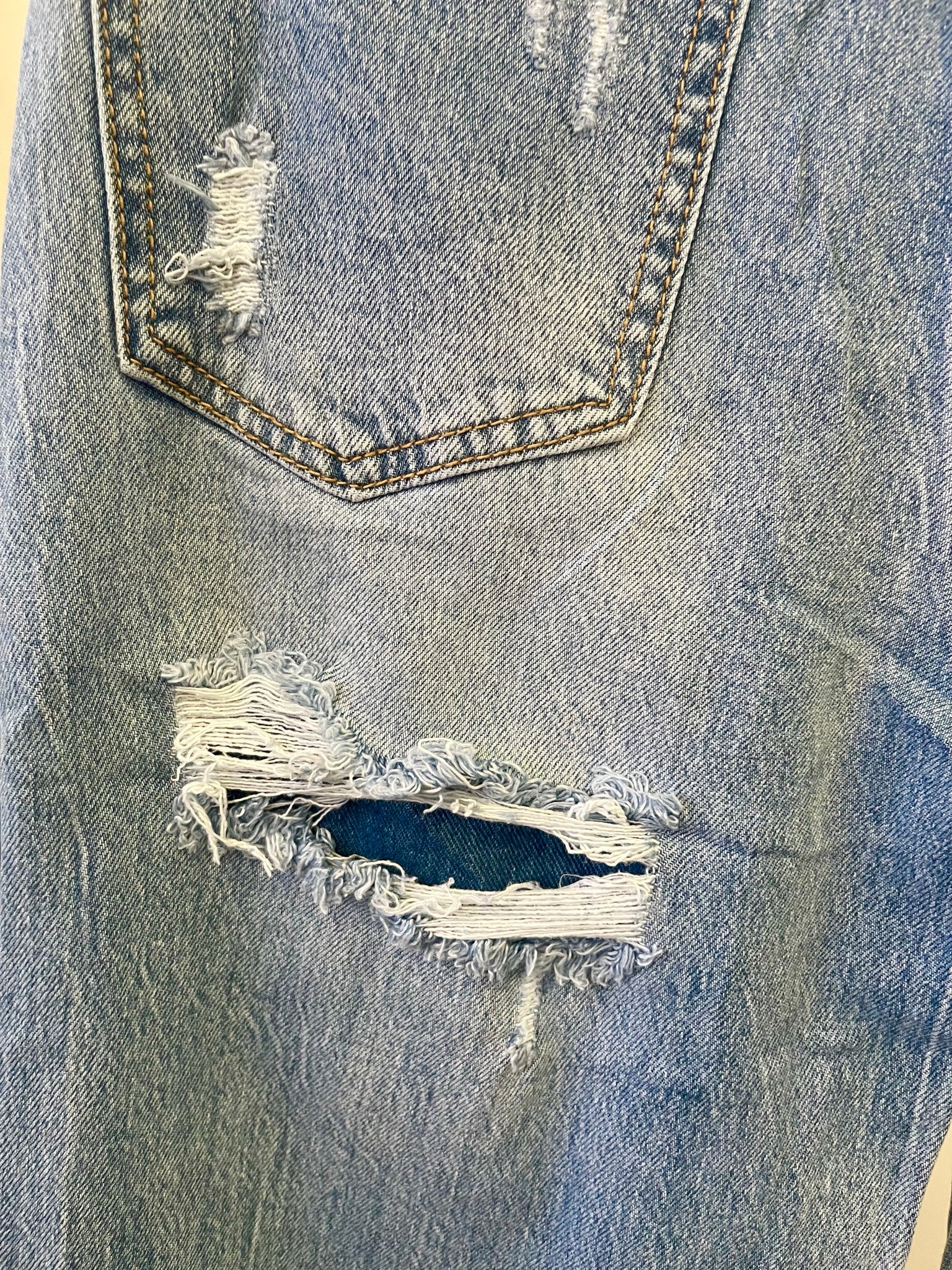 -fenék rész alatt szakadt, de farmer anyaggal bélelt (nem látszik át)