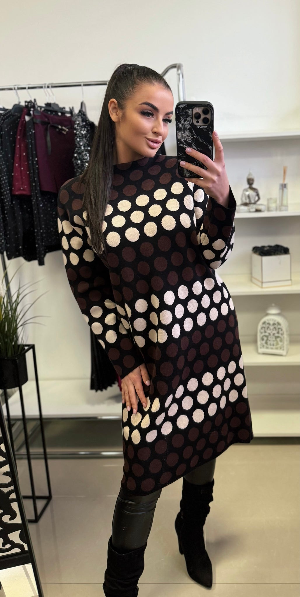 STELLA pöttyös kötött ruha S/M