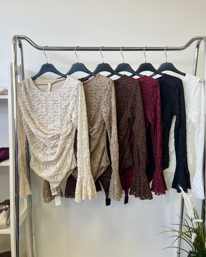 354 MIRJAM csavart csipke tölcsér ujjú csipke body