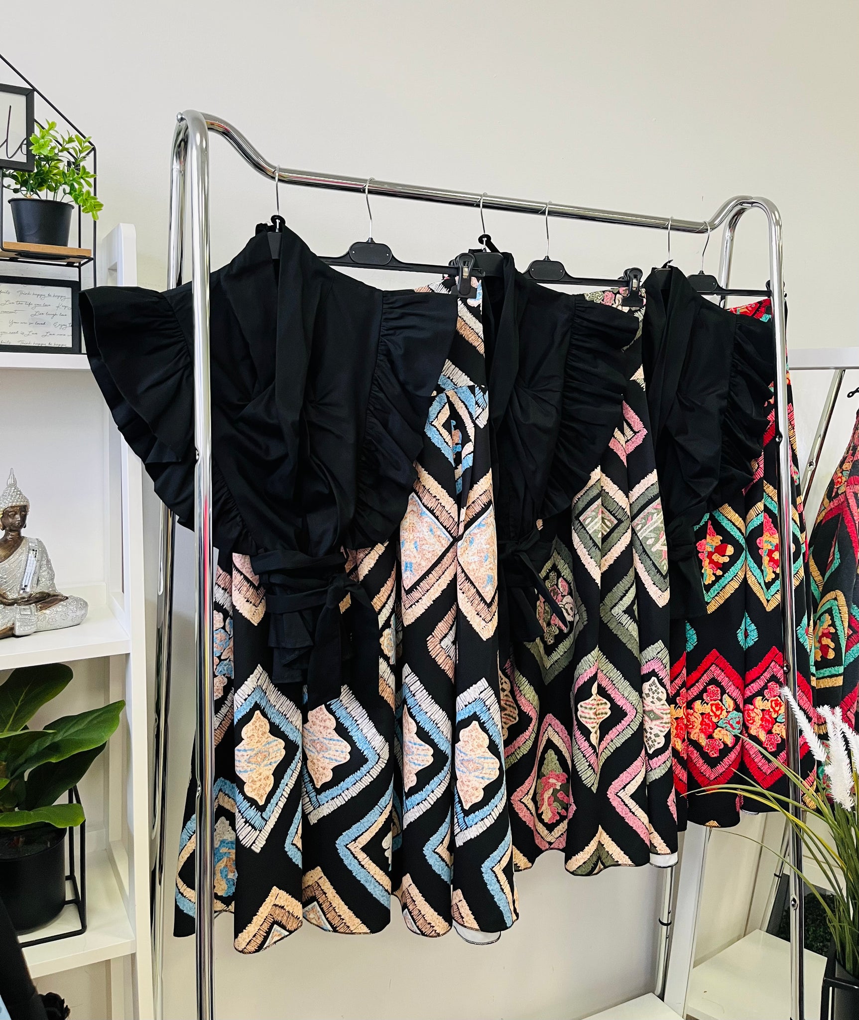 -felső: hossz 56 cm, max.mellb. 102 cm, kötős öv alatt a derék része gumírozott, max.derékbőség 80 cm, 98% pamutvászon, 2% elasztán